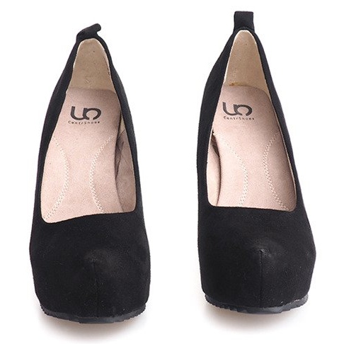 Les escarpins compensés d'une hauteur de 9 cm ajoutent non seulement quelques centimètres à la silhouette, mais l'affinent également magnifiquement. La plateforme supplémentaire à l'avant rend ces chaussures extrêmement confortables, vous permettant de les porter pendant de longues périodes sans vous sentir fatiguée. Le nez rond, l'absence de motif et la couleur noire discrète rendent les escarpins faciles à combiner avec une variété de styles, des jupes aux pantalons.