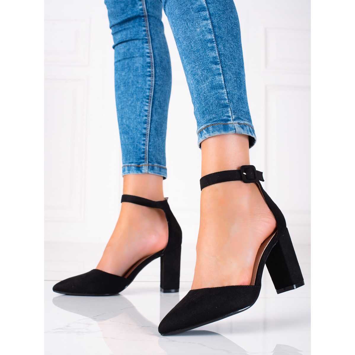 Détails: SHELOVET Escarpins en daim sur un pilier le noir