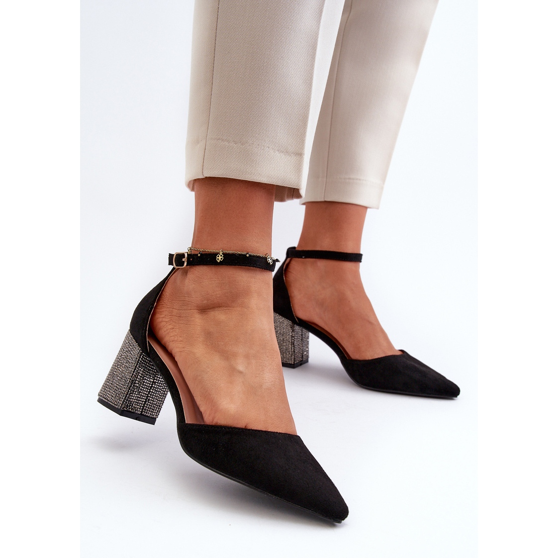 Détails: Escarpins en éco-daim sur talon décoré, noir Anlitela le noir