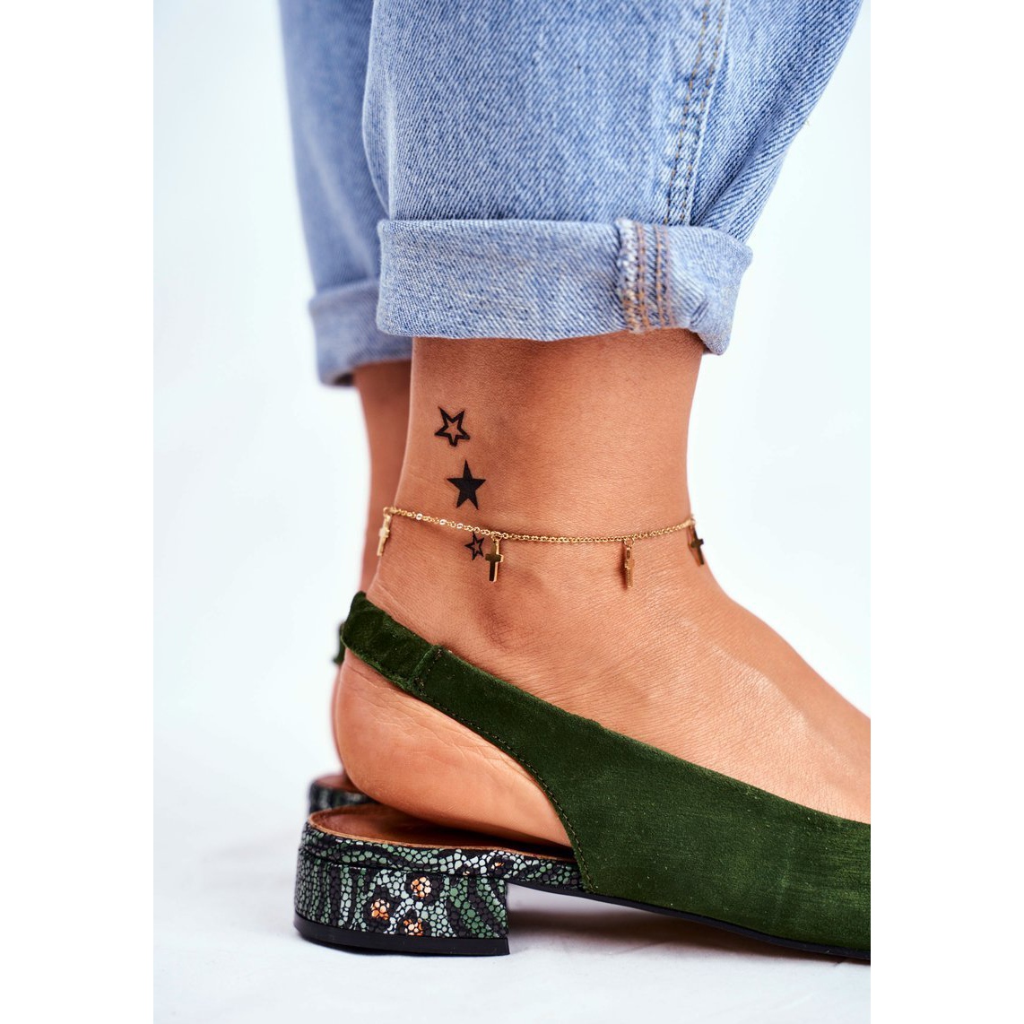 Grâce à la semelle intérieure en cuir, les escarpins offrent un confort tout au long de la journée et leur construction légère les rend presque imperceptibles sur les pieds. Un talon plat de 3 cm de haut joliment décoré leur ajoute un charme caractéristique, les rendant parfaits aussi bien pour un usage quotidien que pour des occasions plus formelles.