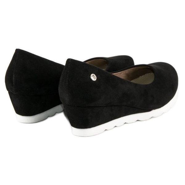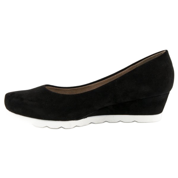 Une cale haute de 5 cm rend les escarpins stables et confortables, ce qui sera apprécié par les femmes qui passent de nombreuses heures debout. L'insert en cuir naturel garantit une ventilation et un confort adéquats, et l'absence de motif les rend faciles à combiner avec différents styles.