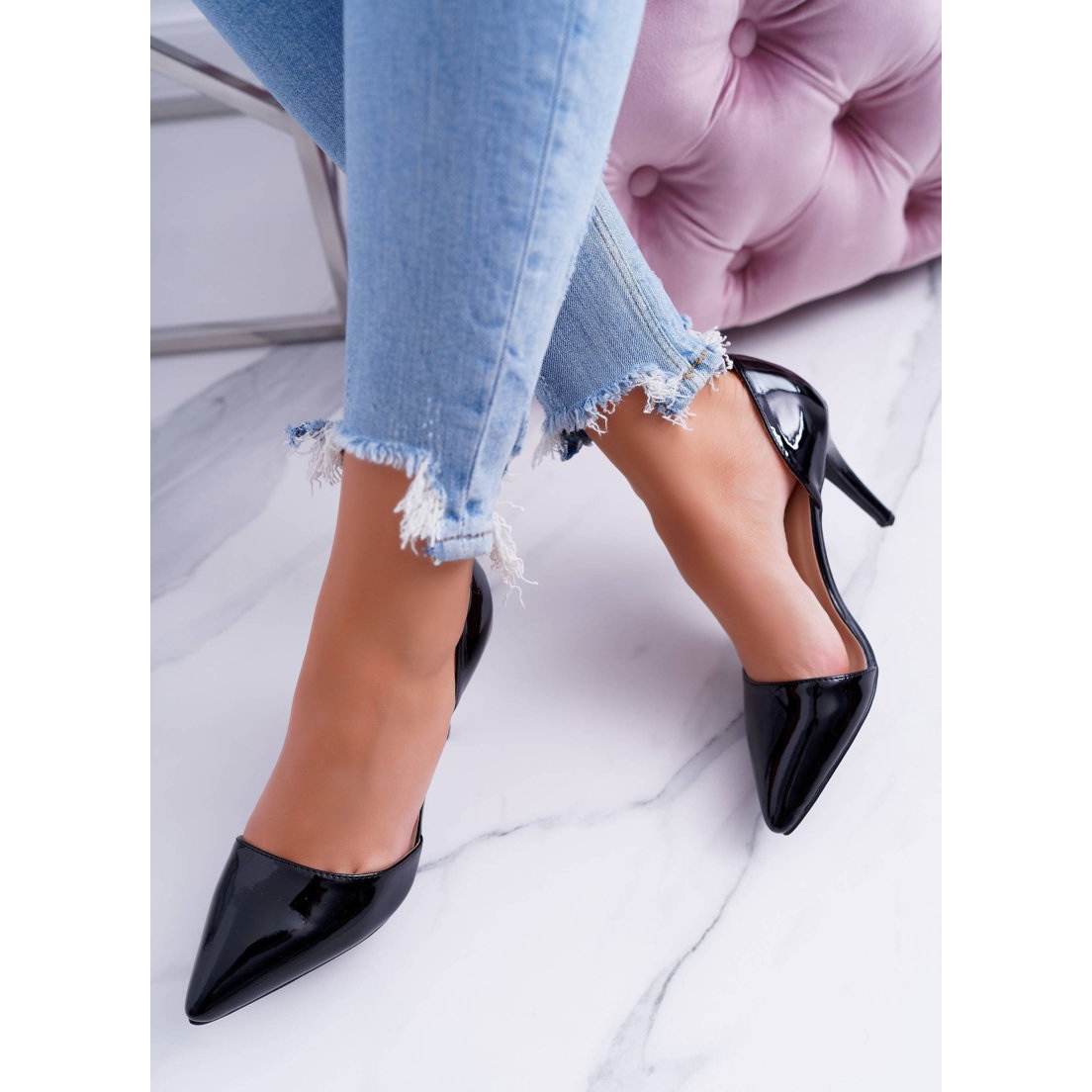 Découvrez un modèle unique d'escarpins femme LU BOO - noirs, vernis et découpés, parfaits en toute occasion ! Ces talons hauts accrocheurs attireront certainement l'attention et donneront un nouvel éclat à n'importe quel style. Grâce au talon haut (9 cm) et à la coupe amincissante, elles mettront en valeur vos jambes et leur donneront de l'élégance, créant une silhouette phénoménale.