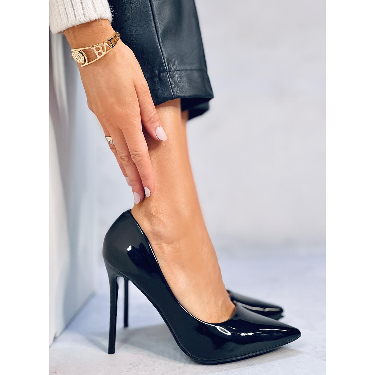 Une finition laquée accrocheuse ajoute un caractère unique aux talons hauts. La surface brillante et lisse du cuir écologique confère aux chaussures une extravagance et un luxe qui s'adaptent parfaitement aux tenues de soirée. Les talons hauts noirs sont un incontournable pour chaque femme, et la version vernie élève le look classique à un nouveau niveau d'élégance.