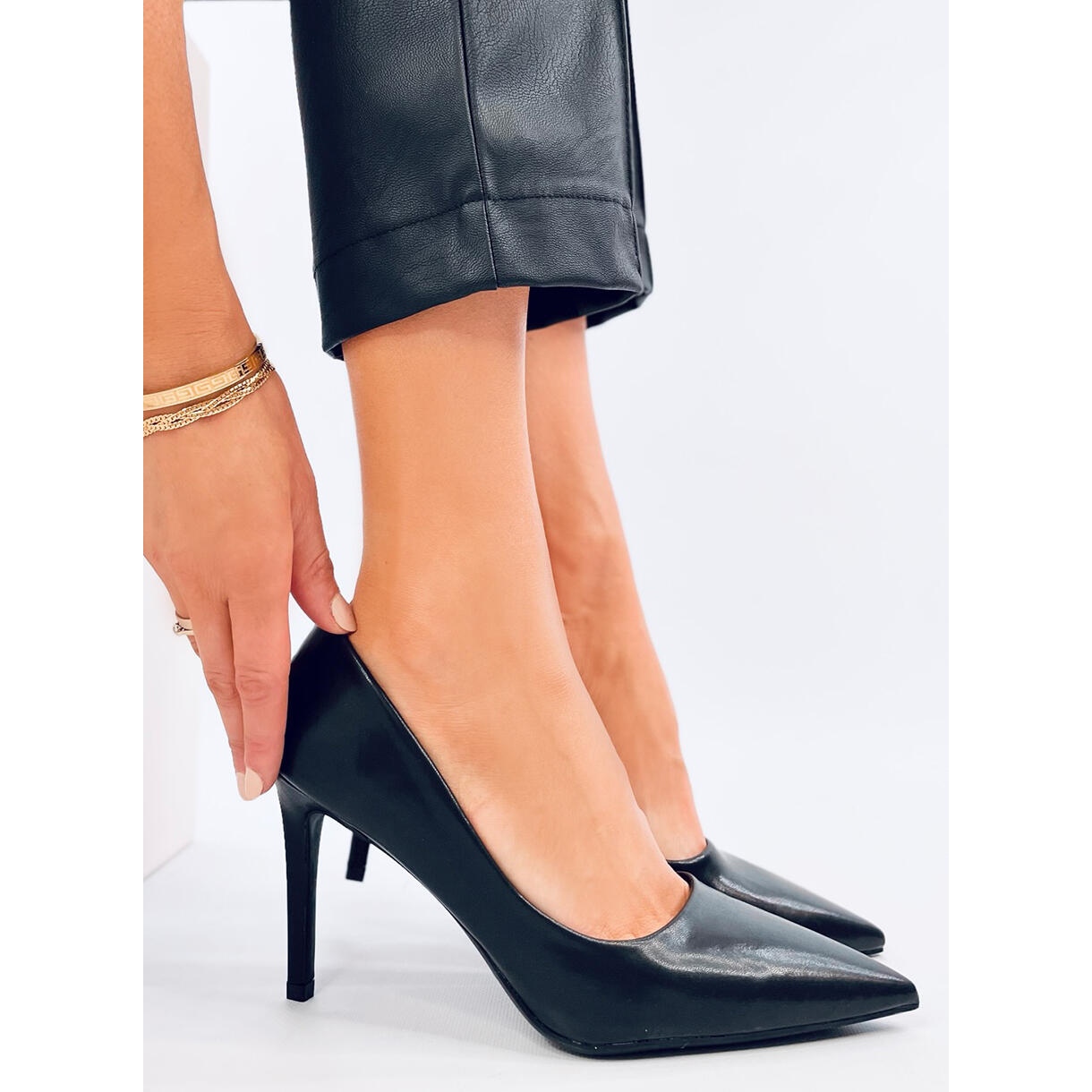 Fabriquées en cuir écologique de haute qualité, ces pompes combinent l'esthétique avec une attention à l'environnement. Leur couleur noire lisse les rend universelles - ils correspondent parfaitement aux robes élégantes ainsi que des stylisations décontractées. Grâce à l'insertion, mettre et retirer des chaussures est extrêmement facile et pratique.