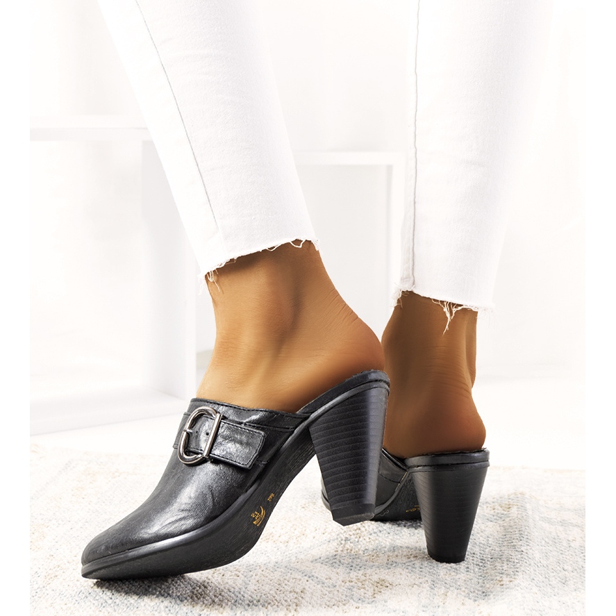 Les mules à talons hauts Black Gralow sont le complément parfait aux styles d'été qui raviront toutes les femmes. Grâce à leur forme élégante et leur talon haut, ces tongs mettent joliment en valeur les jambes et les affinent. Le bout légèrement arrondi donne au pied un aspect subtil et féminin.