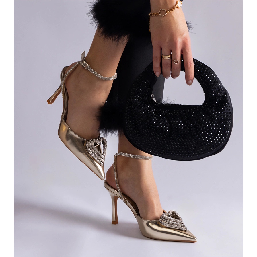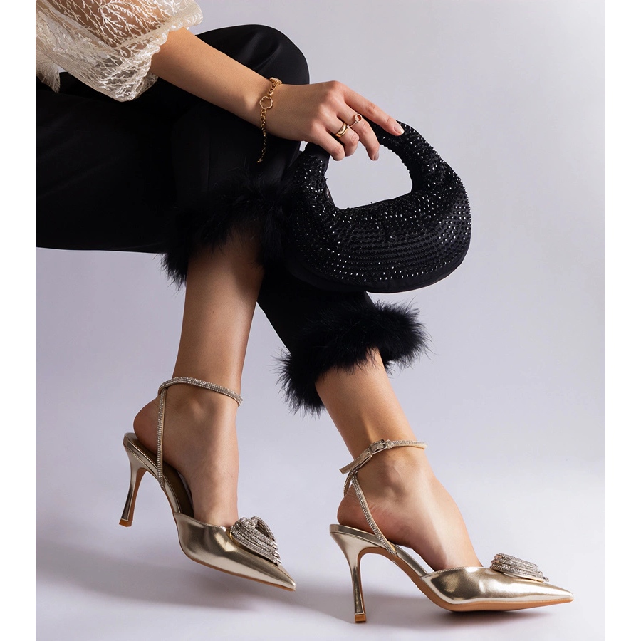 Inna marka Escarpins hauts dorés à talon ouvert ornés de zircons d'or