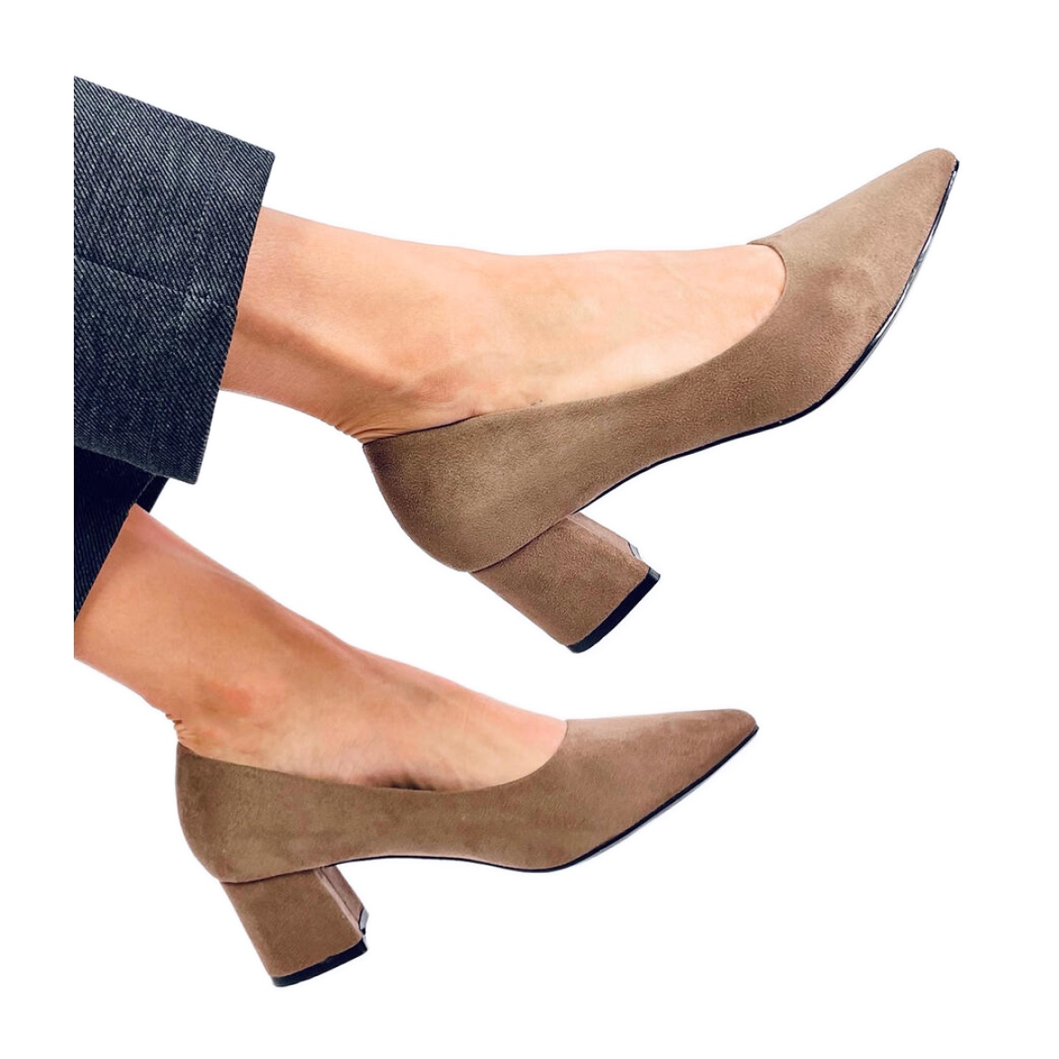 Détails: Escarpins kaki à petit talon brun