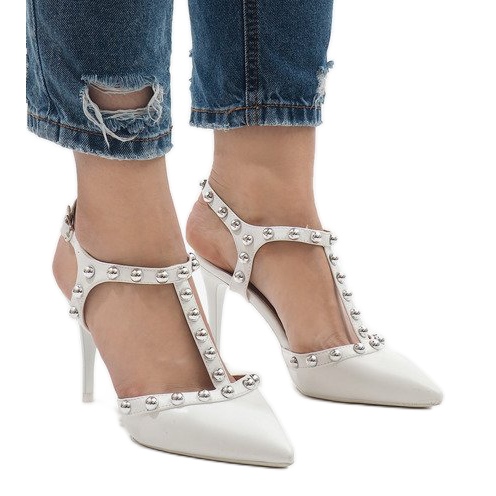 Escarpins laqués blancs avec clous B-57