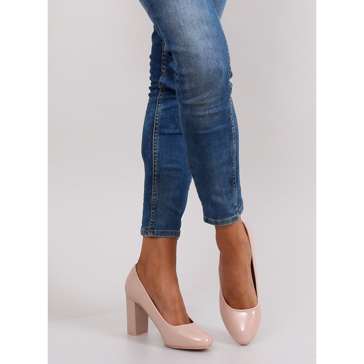 Inna marka Escarpins laqués talon large m263p Beige multicolore rose