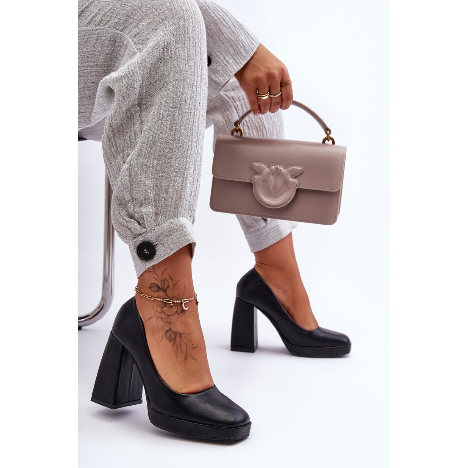Les escarpins uniques sont en cuir écologique. Elles ont un talon raidi. Un talon stable en forme de bloc plus haut et une plateforme délicate assureront votre confort. Les escarpins ont un bout carré tendance. Les escarpins sont parfaits pour de nombreuses occasions, par exemple pour le travail, pour une fête ou des réunions importantes.