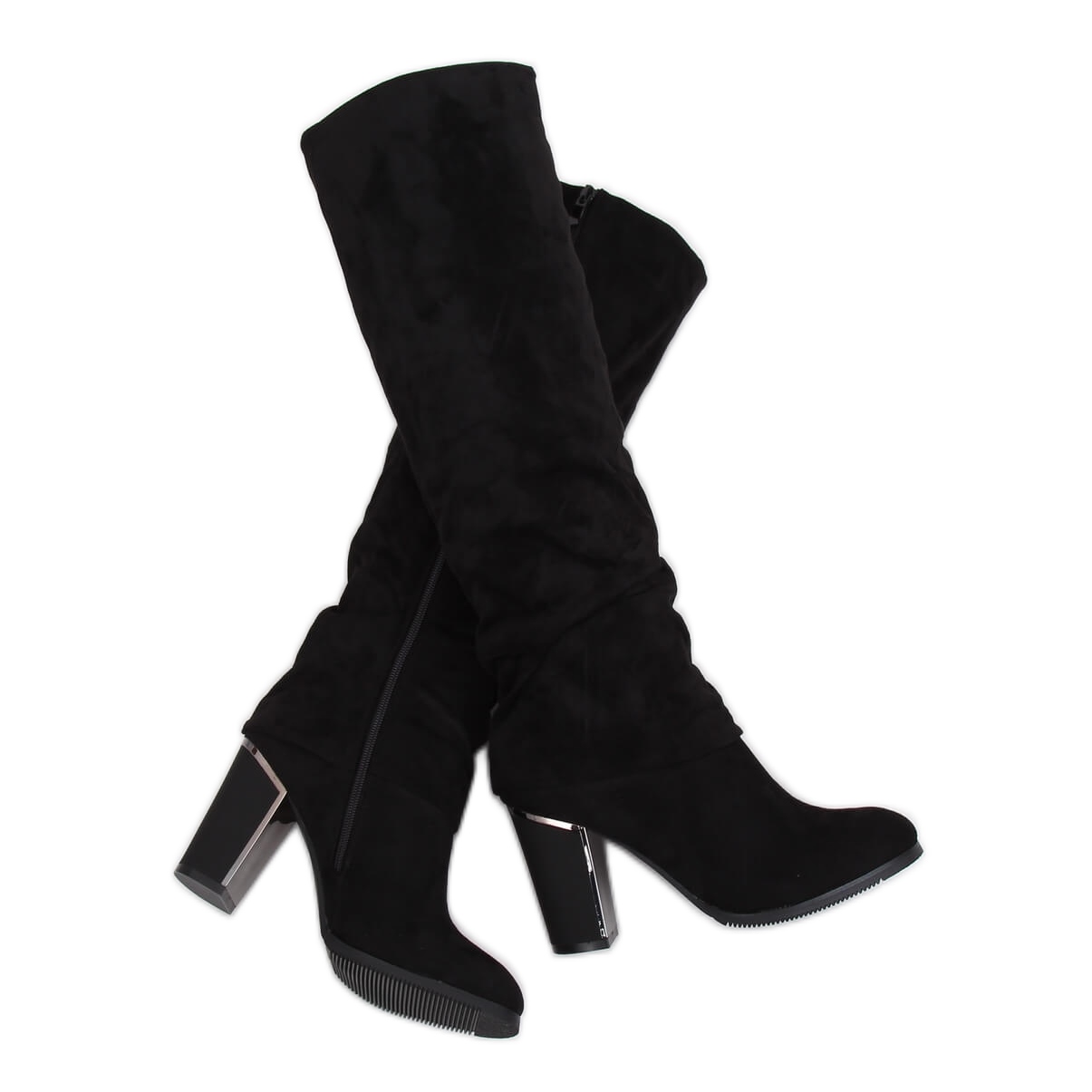 Les bottes noires à talons hauts 1103-GG Black sont le choix parfait pour les femmes qui apprécient les chaussures à la mode et élégantes. Ce modèle est unique grâce à sa tige à volants tendance qui attire l'attention. Un talon haut stable de 9 cm avec une finition mate se combine parfaitement avec le matériau en daim, ajoutant du charme à la silhouette et l'allongeant optiquement.
