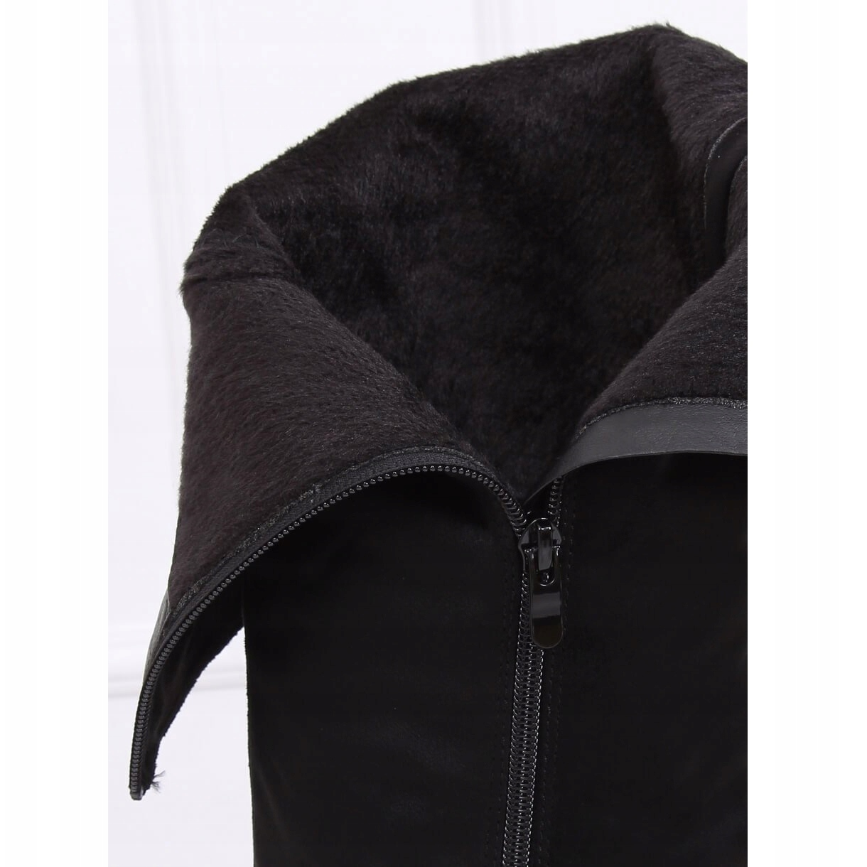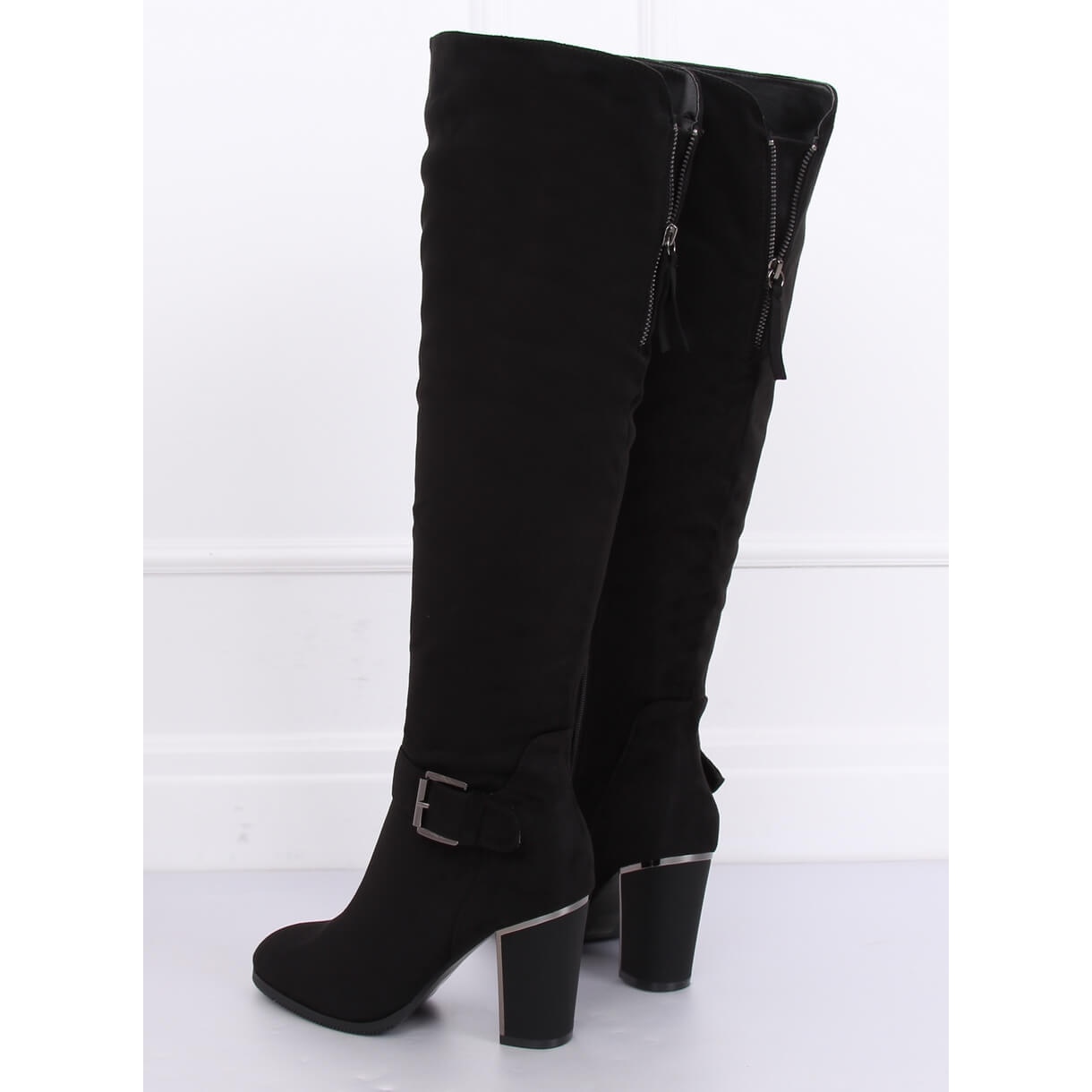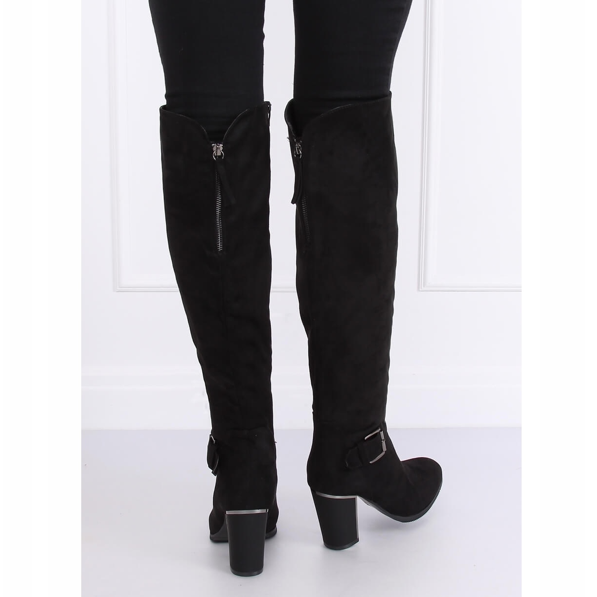 Les bottes noires à talons hauts 1105-GG Black sont une option idéale pour les femmes qui souhaitent allier élégance et style de tous les jours. Ces cuissardes en daim à boucle se distinguent par une tige haute qui souligne parfaitement la silhouette, et le talon mat de 9 cm allonge optiquement les jambes. Grâce à la fermeture éclair pratique sur toute la longueur de la tige, l'enfilage des chaussures devient rapide et confortable.