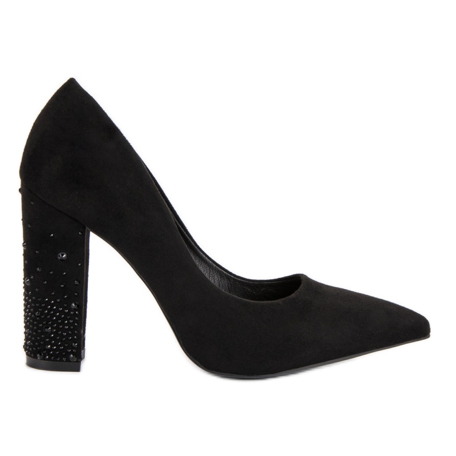 Les escarpins noirs avec cristaux de Bestelle sont un choix parfait pour les femmes qui apprécient l'élégance et le style. Fabriquées en cuir suédé écologique de haute qualité, ces chaussures allient design moderne et confort de port. Leur couleur noire classique leur permet de s'adapter à de nombreux styles, aussi bien au quotidien que pour des occasions spéciales.