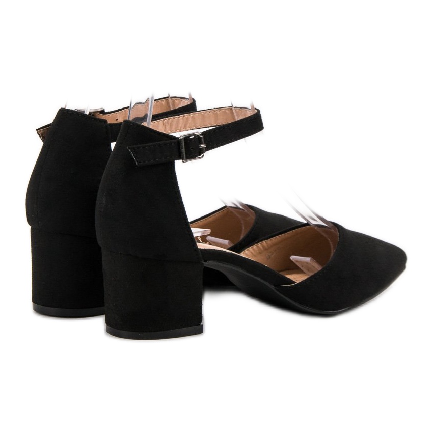 Les escarpins ont une fermeture à boucle, qui garantit stabilité et confiance à porter en toute occasion. Fabriqués en daim écologique, ils sont extrêmement élégants et respectueux de l'environnement. La semelle intérieure profilée en cuir naturel assure un confort tout au long de la journée, réduisant ainsi la fatigue du pied même après une longue utilisation.