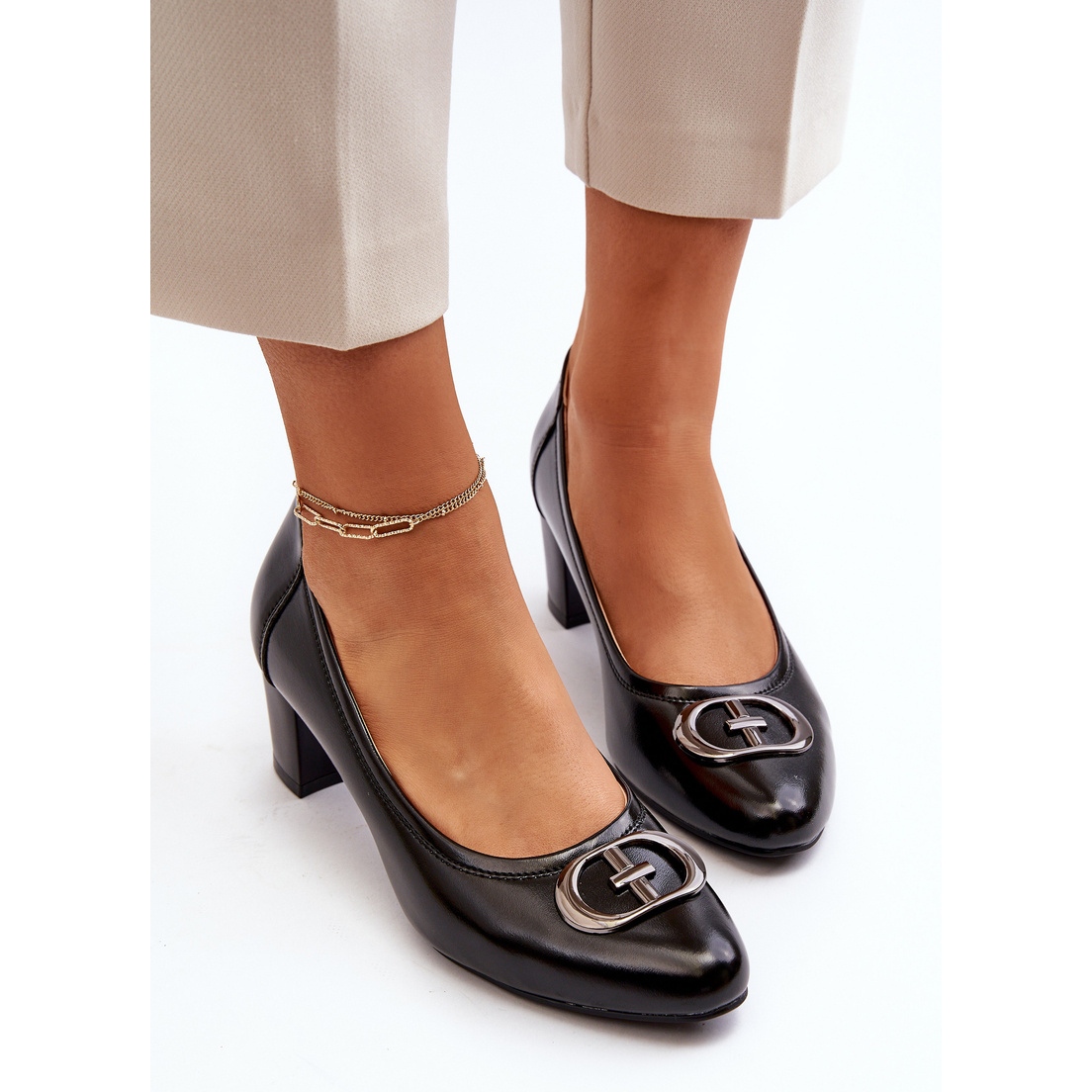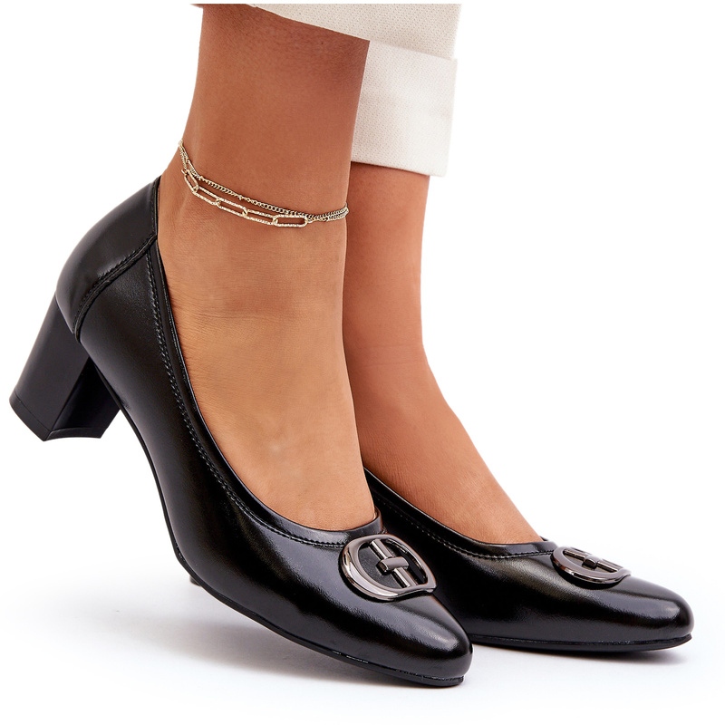Vinceza Vinceza Escarpins noirs à talons bas Aeliris avec décoration le noir