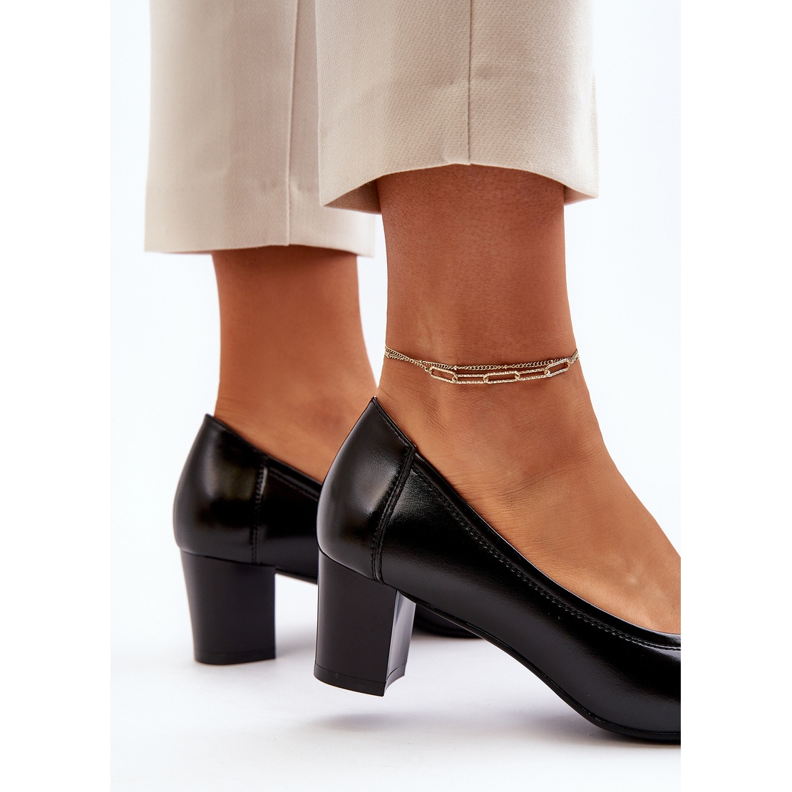 Les pompes sont en cuir écologique de haute qualité, ce qui les rend non seulement à la mode, mais aussi respectueuses de l'environnement. Bars bas 6 cm de haut assurent la stabilité et le confort, afin que vous puissiez profiter de chaque étape sans crainte de fatigue. Les nez en forme d'amande ajoutent toute élégance et style.