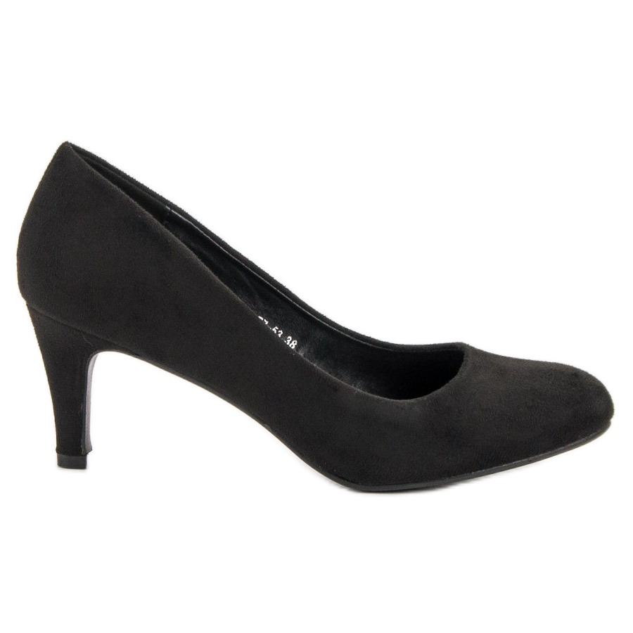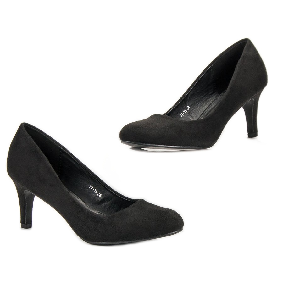 Fabriqués en cuir suédé écologique de haute qualité, ces escarpins se caractérisent par une couleur noir profond qui ajoute classe et chic. Leur confort de port est assuré par une matière douce et un talon intégré et rigidifié qui stabilise le pied. La hauteur du talon est de 7 cm, ce qui rend les chaussures plus fines et en même temps suffisamment confortables pour être portées longtemps.
