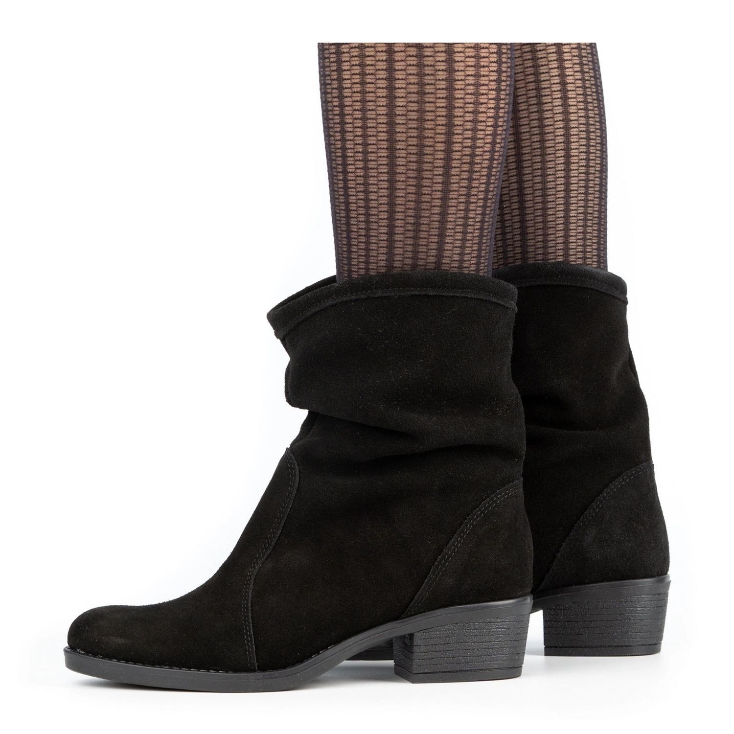 Les bottes se mélangent bien avec des robes, des jupes et des pantalons ajustés - le talon élimente optiquement la silhouette, et la couleur noire classique facilite l'installation du manteau ou du sac. Le modèle est également disponible dans d'autres variantes de couleur.