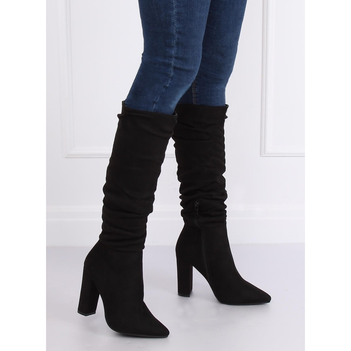 Les bottes à talons hauts NC885 noires sont un choix parfait pour les femmes qui souhaitent allier élégance et confort. Ces bottes en daim se distinguent par une tige à volants tendance, qui ajoute du caractère et de la subtilité. Un poteau stable d'une hauteur de 10,5 cm affine parfaitement les jambes, soulignant leur beauté et leur féminité. Les bouts délicatement pointus donnent au pied un aspect gracieux, ce qui en fait une solution idéale pour diverses occasions – du style quotidien aux occasions élégantes.