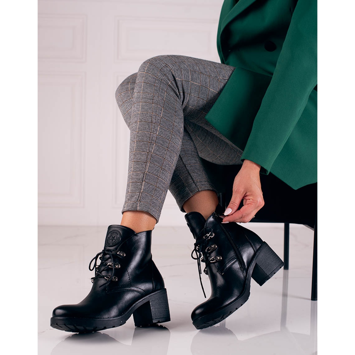 Un talon haut de 6 cm et une plateforme de 2 cm permettent à ce modèle d'allonger optiquement les jambes tout en assurant une stabilité adéquate. À leur tour, le bout rond et la largeur supérieure de 22 cm assurent non seulement le confort, mais aussi un look élégant. Le laçage et la fermeture éclair assurent un ajustement parfait.