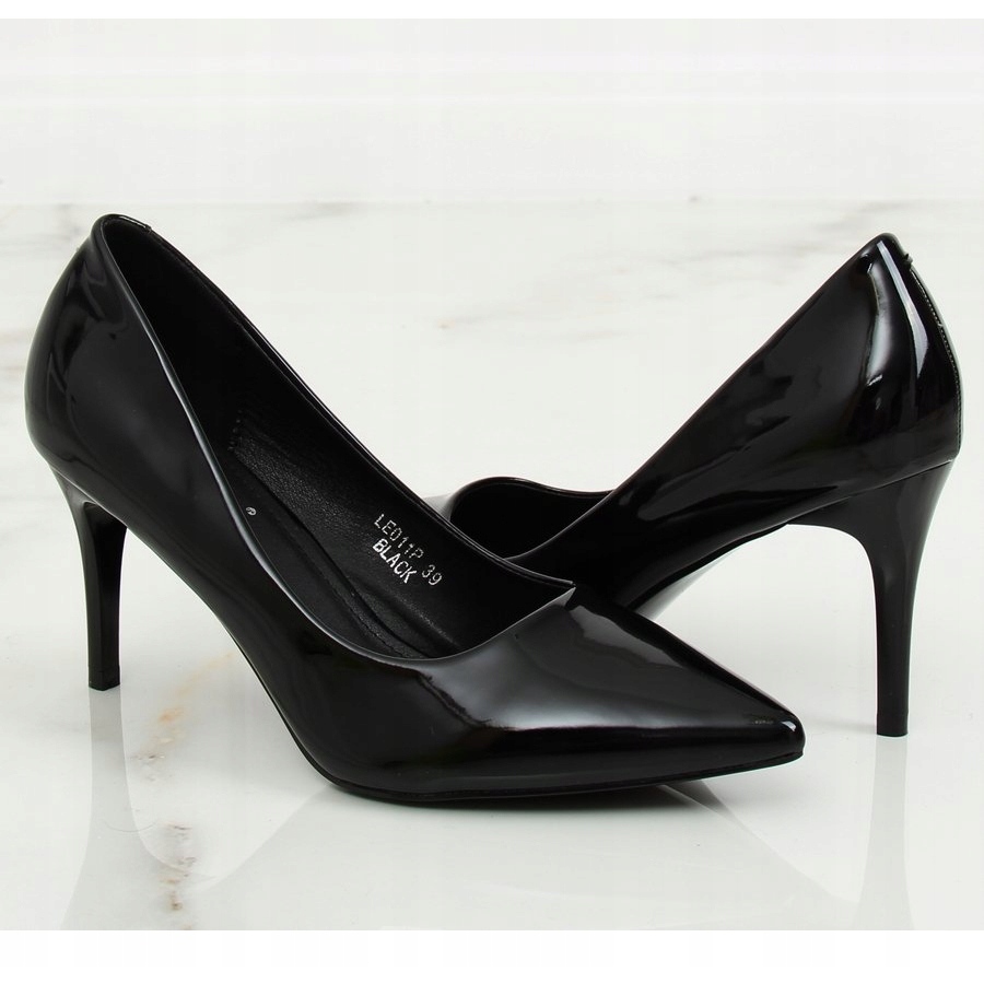 Les talons hauts noirs pour femmes LE011P Black sont un choix parfait pour toutes les femmes qui souhaitent allier élégance et style de tous les jours. Les escarpins classiques à talons aiguilles se distinguent par une finition laquée unique, qui leur confère un éclat unique et souligne leur design intemporel. Dotés d'un bout pointu délicat et d'un talon haut de 8 cm, ces talons hauts affineront magnifiquement vos jambes, ajoutant une touche d'extravagance à n'importe quel style.