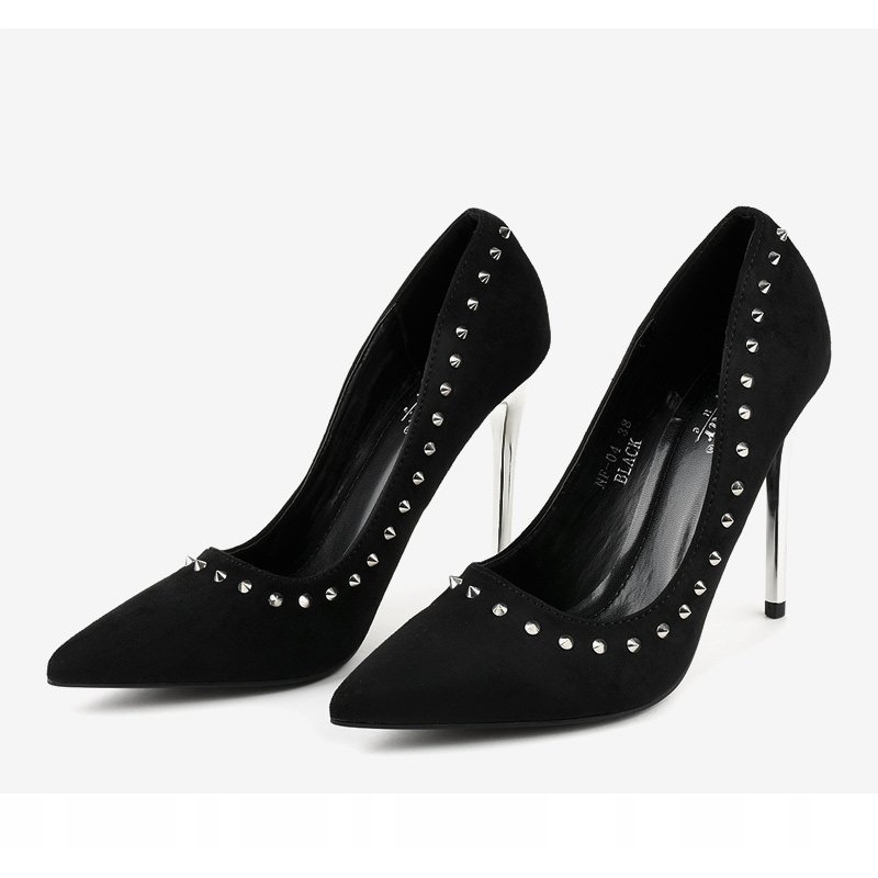 Les escarpins noirs à talons hauts NF-04 sont un choix parfait pour les femmes qui souhaitent allier élégance et un peu d'avant-garde. Ces talons hauts classiques se distinguent par de délicats clous placés autour de la tige, ce qui leur ajoute un caractère tendance et en fait un élément unique de tout style.
