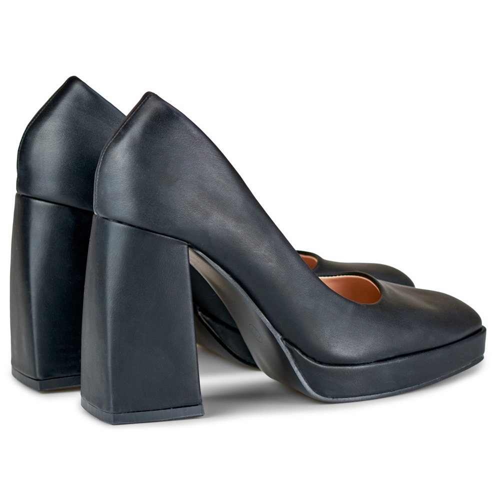 Les bouts des escarpins sont carrés, ce qui leur donne du caractère et fait partie des tendances des saisons en cours. Le matériau de la semelle intérieure est également du cuir écologique et la semelle est en matière synthétique.