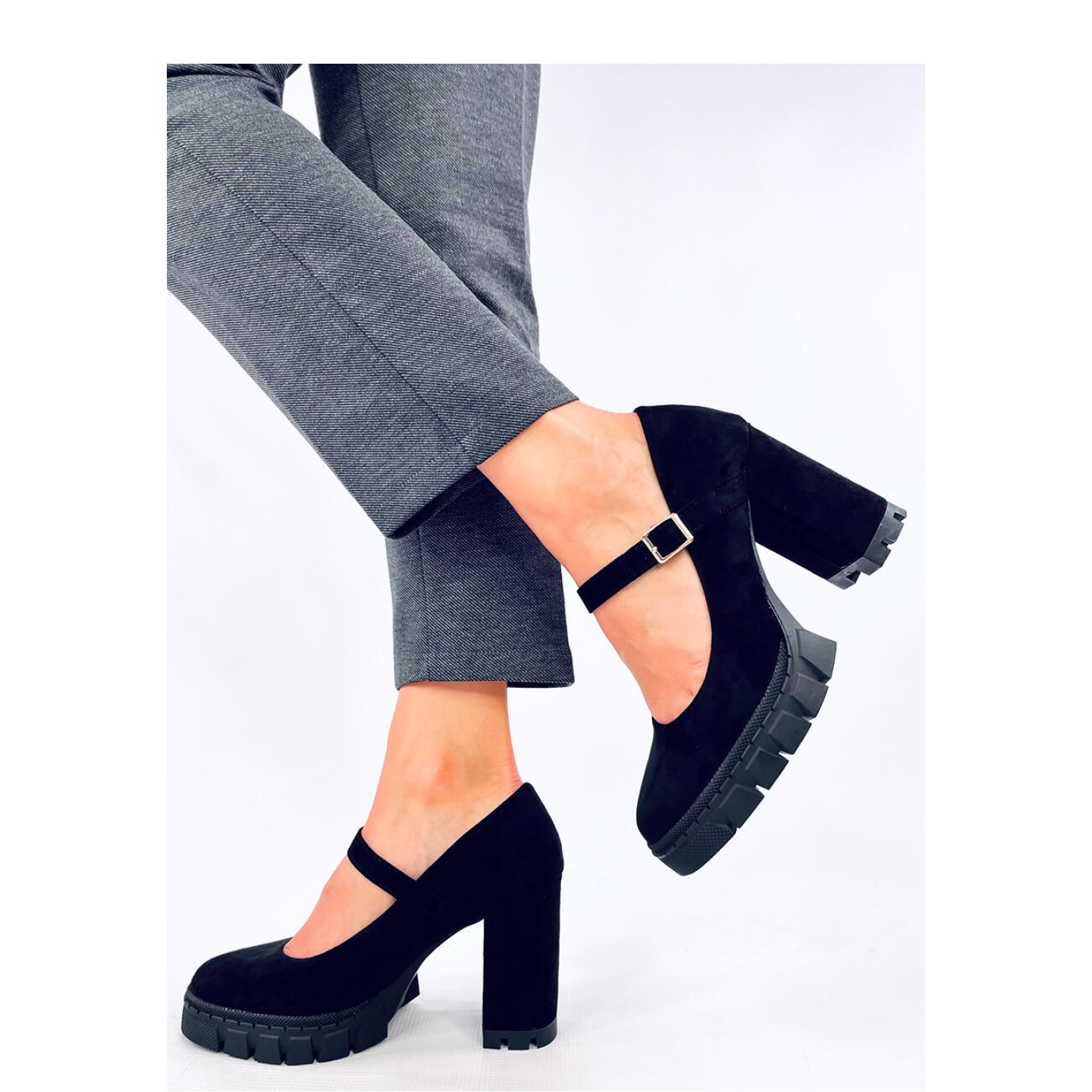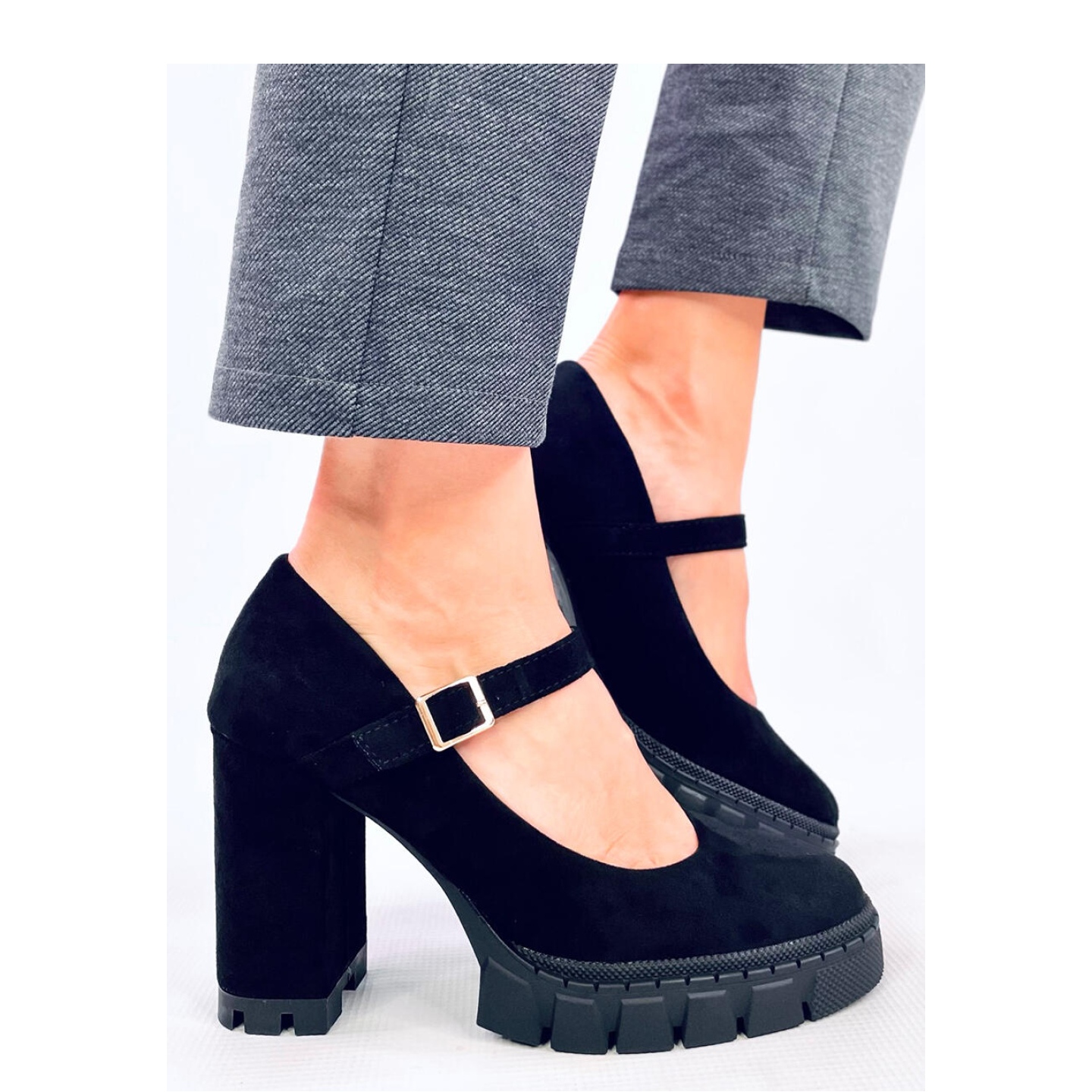 Les pompes sur la plate-forme avec la ceinture noire habillée d'Illlo sont le choix parfait pour chaque femme qui veut combiner le confort avec l'élégance. Fabriqués en daim écologique de haute qualité, ces pompes noires se réjouissent de leur conception simple et efficace. Le nez rond et une ceinture subtile leur donnent du caractère, ce qui en fait un vrai indispensable cette saison.