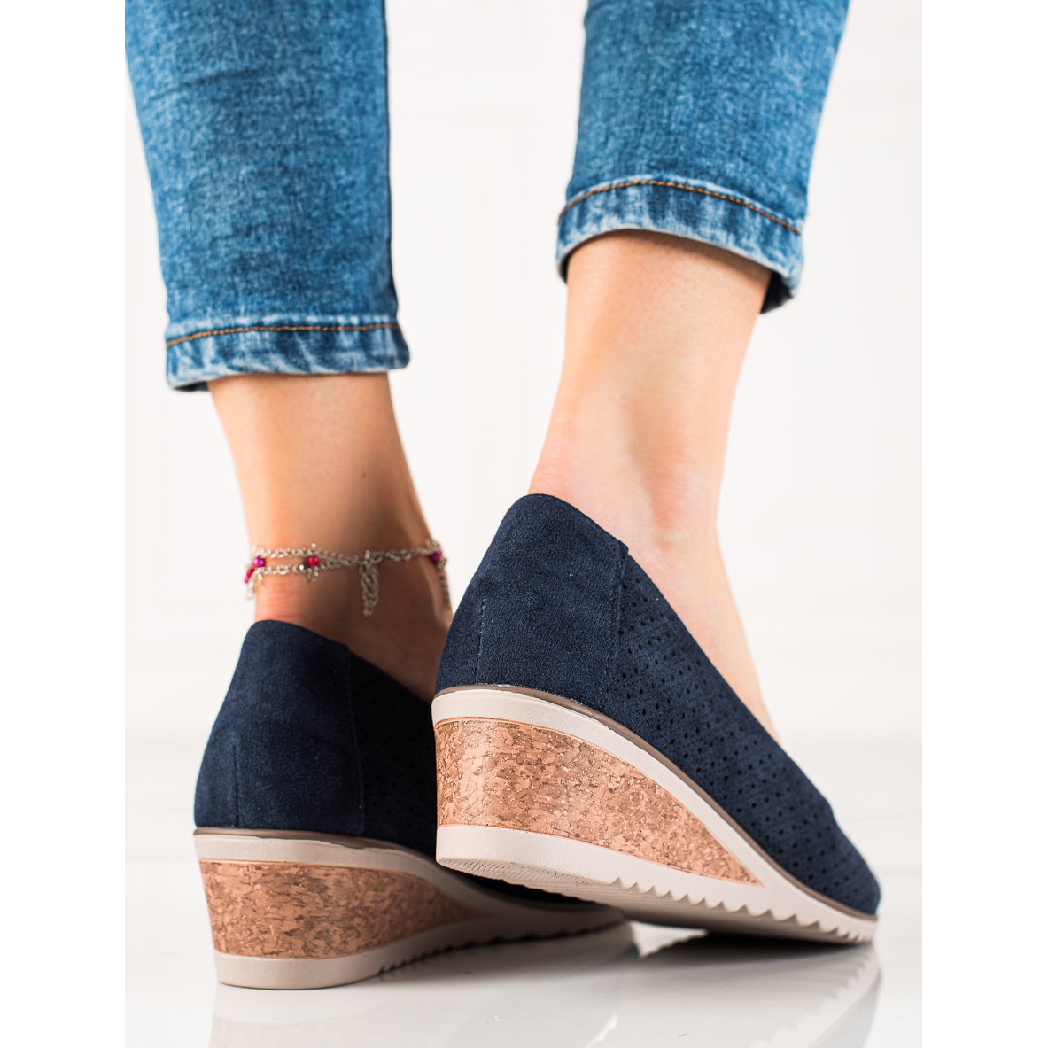 Découvrez l'élégance et le confort avec les escarpins à bout ouvert bleu marine de W. Potocki. Ces chaussures uniques, fabriquées en imitation daim de haute qualité, allient un style classique à un caractère décontracté, parfaites pour les journées de printemps et d'été. Leur motif ajouré apporte de la légèreté, et le talon rapporté et rigidifié garantit stabilité et confort au quotidien.
