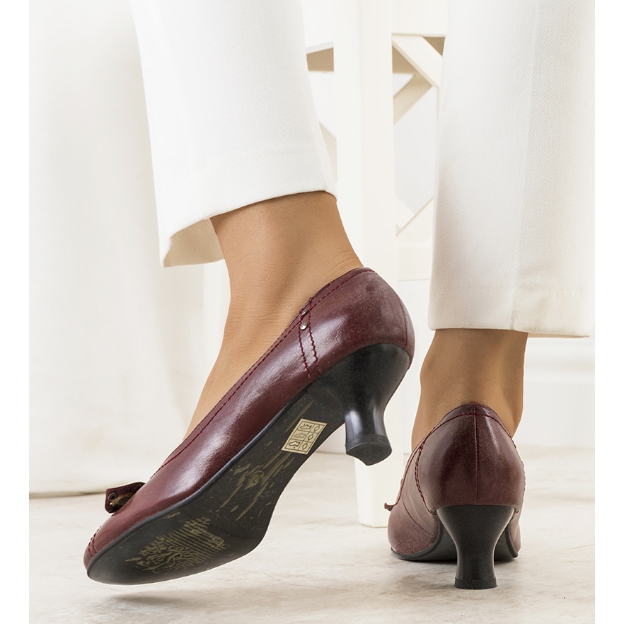 Escarpins à enfiler Repina. Montée sur des talons bas, avec un bout arrondi qui affine le pied. Fabriqué en éco-cuir, décoré d'un nœud avec de petits clous plats. Des escarpins élégants sur un poteau sont un excellent choix pour le style professionnel. Numérotation standard, veuillez suggérer votre taille.