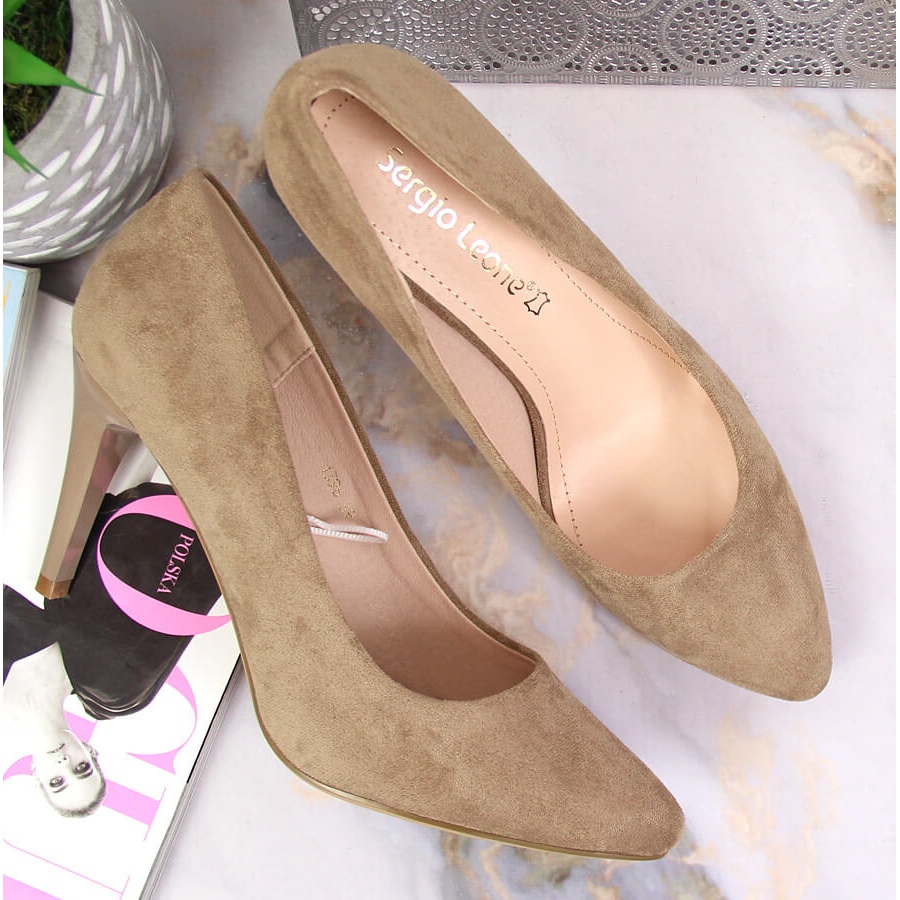 Les escarpins à talons aiguilles en daim beige du fabricant Sergio Leone sont un excellent choix pour les femmes qui apprécient l'élégance et le confort. Fabriqués en cuir suédé écologique, ils sont extrêmement élégants et leur couleur beige neutre leur permet de s'agencer à de nombreux styles différents.