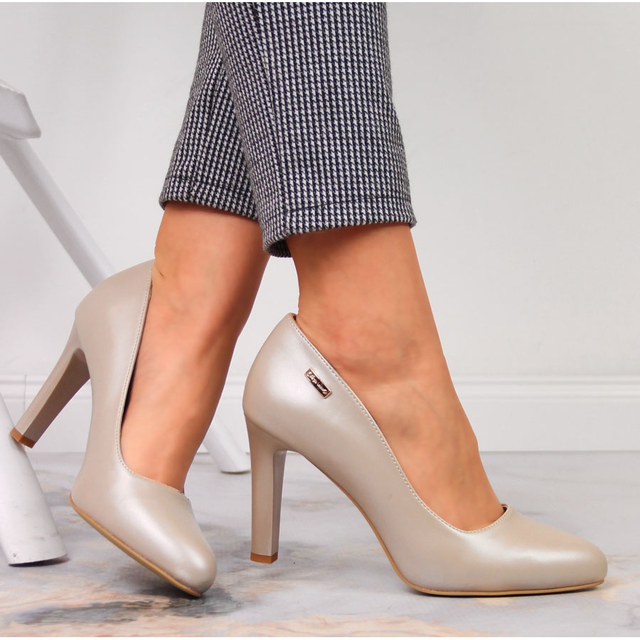 Pumps Pearl Sergio Leone dans une teinte nue est une combinaison de style et de confort. Une tige lisse en cuir écologique de haute qualité avec une finition perle délicate donne aux chaussures une lueur subtile, grâce à laquelle ils sont excellents dans les stylisations formelles et décontractées. Un nez rond classique et un poteau stable d'une hauteur de 9 cm offrent un look élégant tout en maintenant le confort de la marche. L'insert en cuir naturel s'occupe de la ventilation et de la douceur pendant l'utilisation.