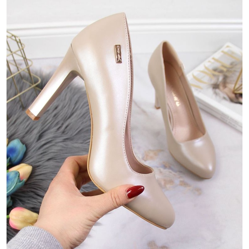 Des pompes élégantes sur un poste stable, qui combinent le style et le confort quotidiennement et pour des occasions spéciales. Le modèle Sergio Leone dans SK3AC Nude Pearl Color fonctionnera à la fois dans les stylisations de bureau et de soirée.