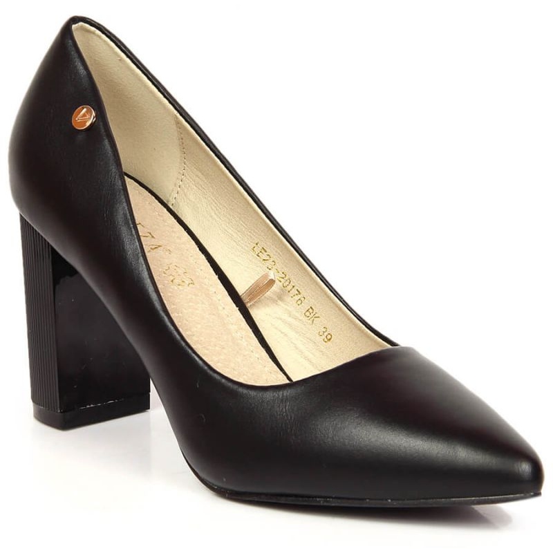La tige des escarpins est en cuir synthétique de haute qualité, ce qui garantit durabilité et facilité d'entretien. L'intérieur de la chaussure est doté d'une doublure synthétique, qui ajoute du confort lorsqu'elle est portée toute la journée. À son tour, le talon haut de 9 cm met parfaitement en valeur la silhouette, lui donnant une expression élégante, et le talon stable rend la marche avec ces escarpins un plaisir.