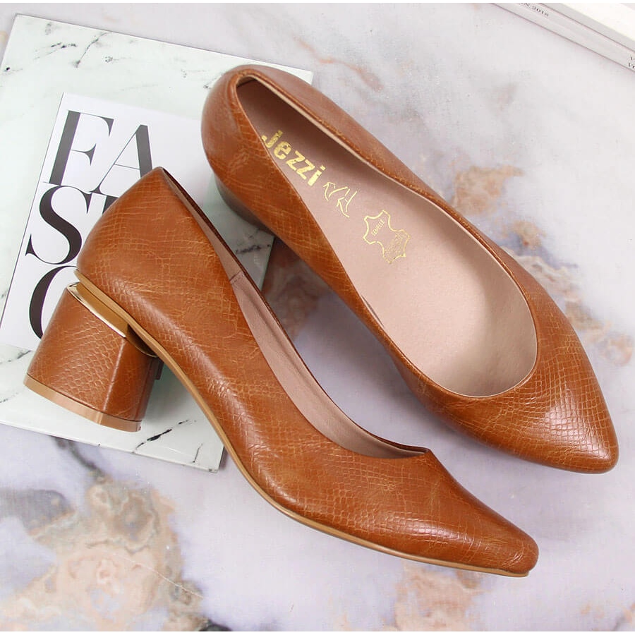 Nous vous présentons d'élégants escarpins à talon marron décoratif de la célèbre marque Jezzi, qui allient parfaitement style et confort d'utilisation. Ces chaussures uniques ont été conçues pour les femmes qui souhaitent avoir un look chic en toute situation tout en étant confortables à porter.
