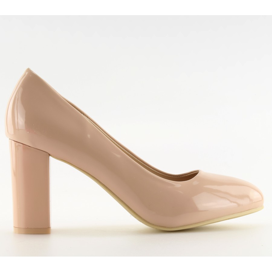 Escarpins à talons larges beiges B-59 - beiges, vernis, élégants et confortables.