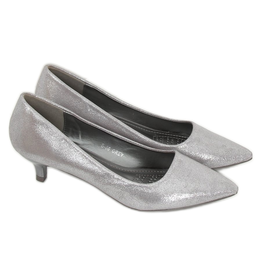 Détails: Escarpins sur un talon bas argent B-36 Gris
