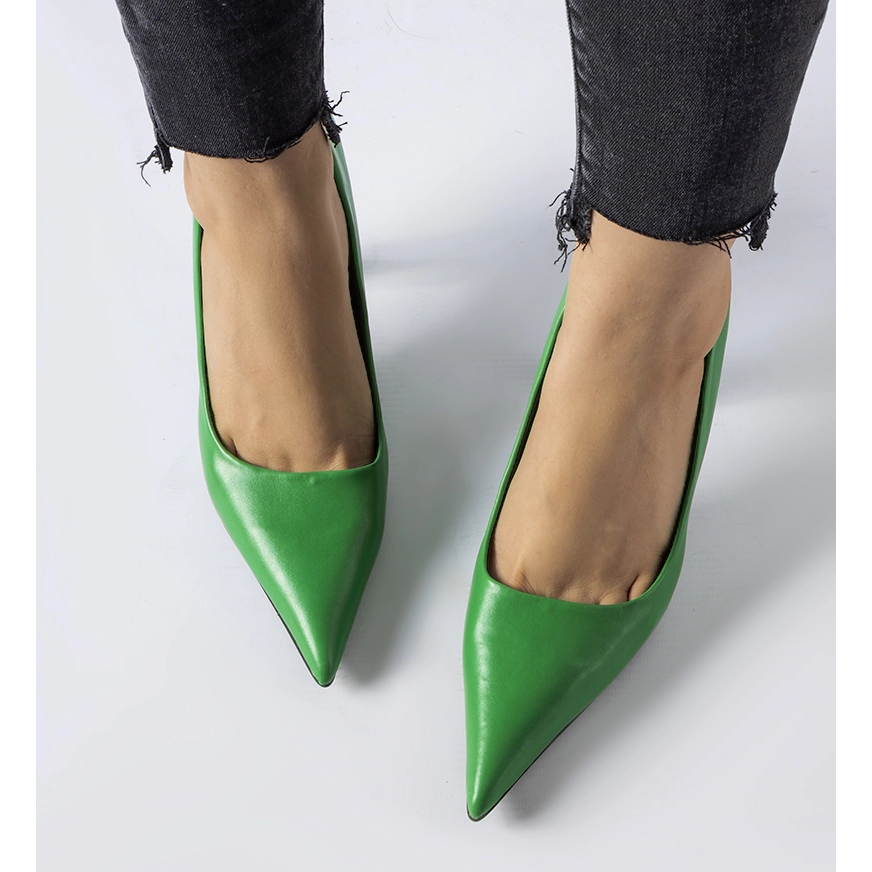 La couleur verte de ces escarpins égayera toutes les occasions, et la semelle en plastique noir assure stabilité et traction. Le matériau de la semelle intérieure, également en cuir écologique, assure le confort de vos pieds, même en cas de port prolongé. Le modèle 6140 de la collection été est un classique qui devrait figurer dans chaque garde-robe.