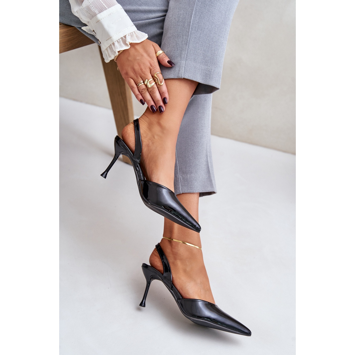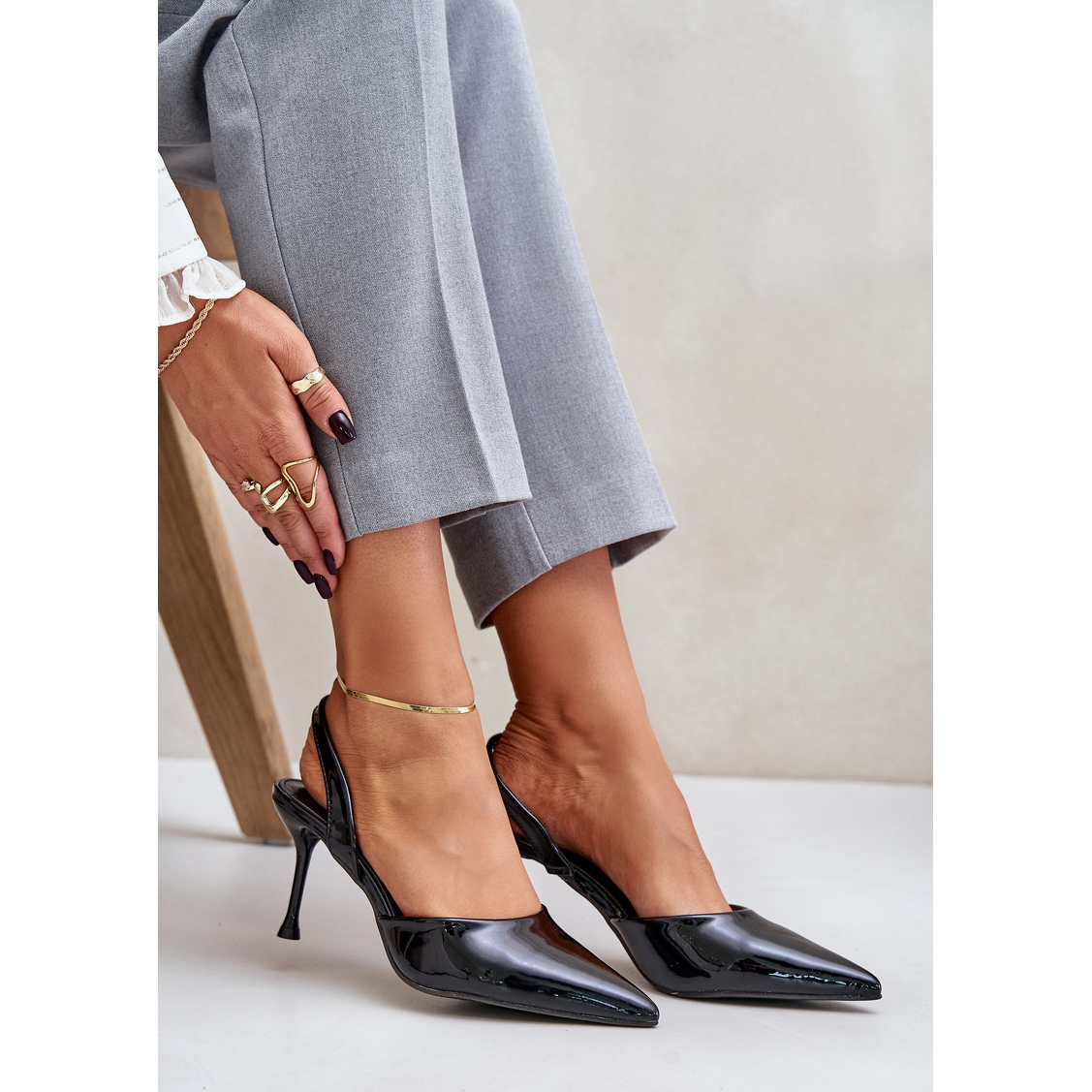 Nous vous présentons des talons aiguilles vernis à talon ouvert qui allient élégance et confort, parfaits pour toute occasion spéciale. Fabriquées en éco-cuir de haute qualité dans une couleur noire classique, ces chaussures deviendront sûrement un élément clé de votre garde-robe.