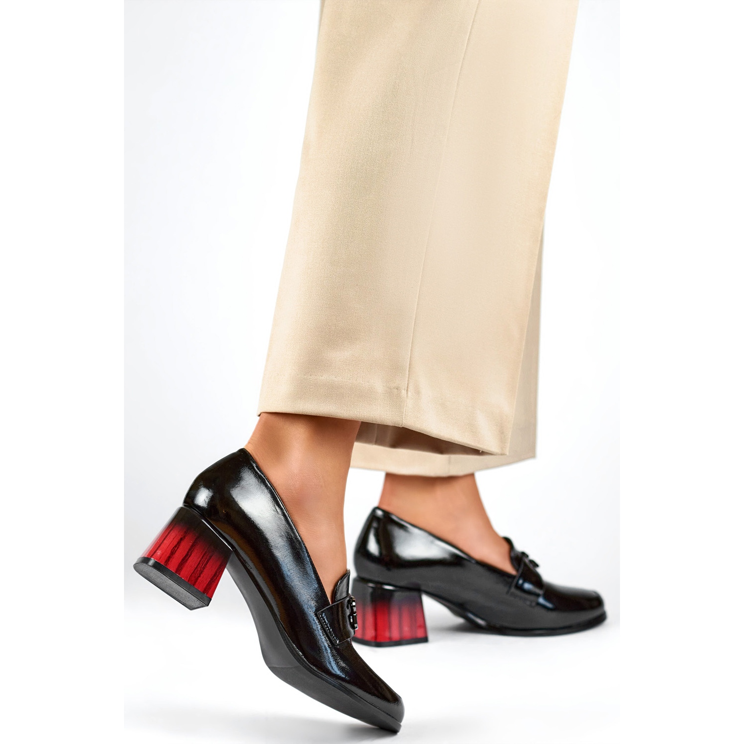 Ces pompes ont un talon de 5,5 cm de haut, ce qui ajoute non seulement une élégance subtile, mais garantit également la stabilité et le confort, ce qui est particulièrement important pendant les heures d'utilisation. Grâce à l'insertion, mettre et retirer les chaussures devient rapide et simple, ce qui sera certainement apprécié par toutes les femmes occupées.