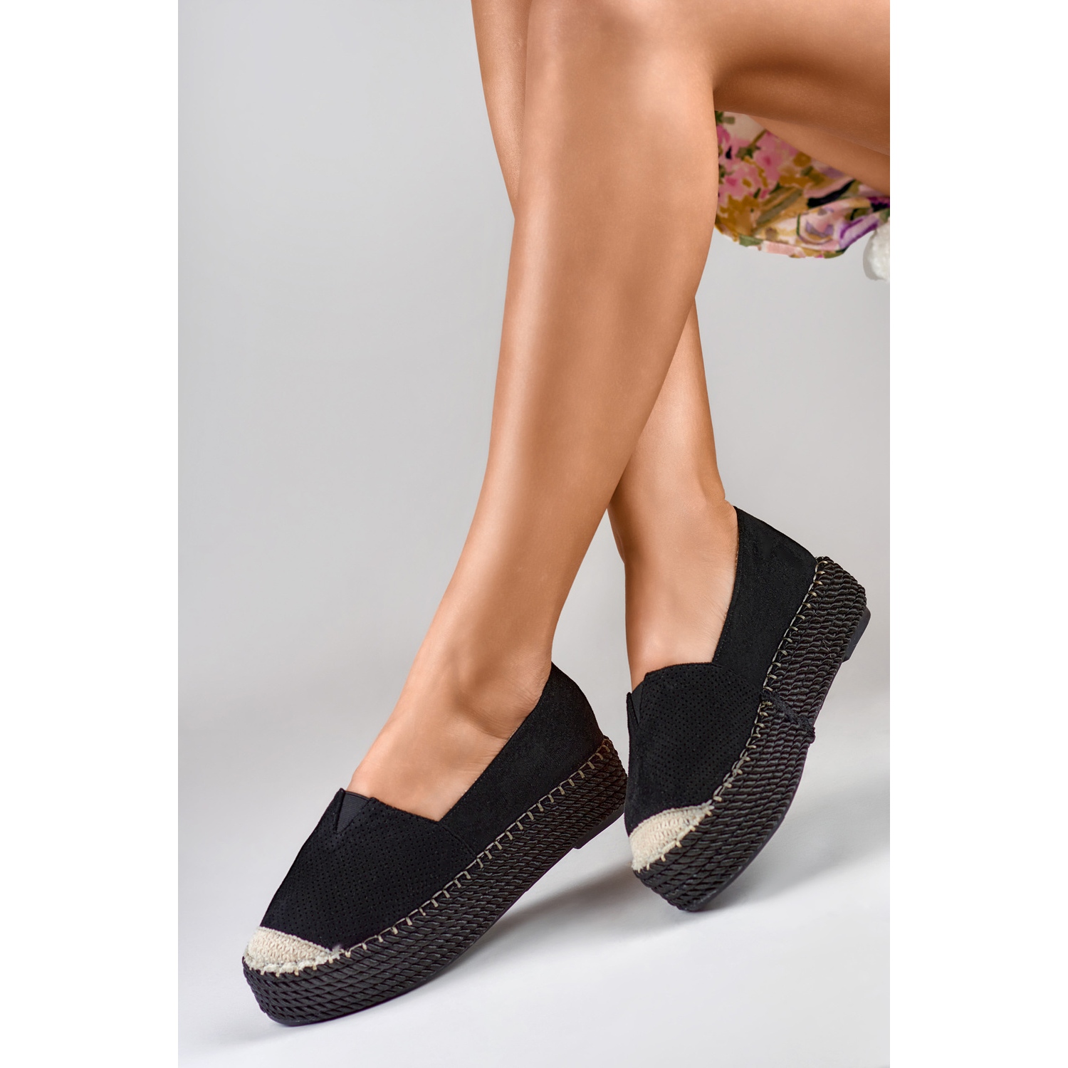 Les espadrilles noires se caractérisent par un bout rond, qui assure un confort de port, et la fermeture à enfiler facilite l'enfilage et le retrait. Grâce à leur belle tige en daim, ces chaussures sont extrêmement élégantes et leur design minimaliste les rend adaptées à de nombreux styles différents.