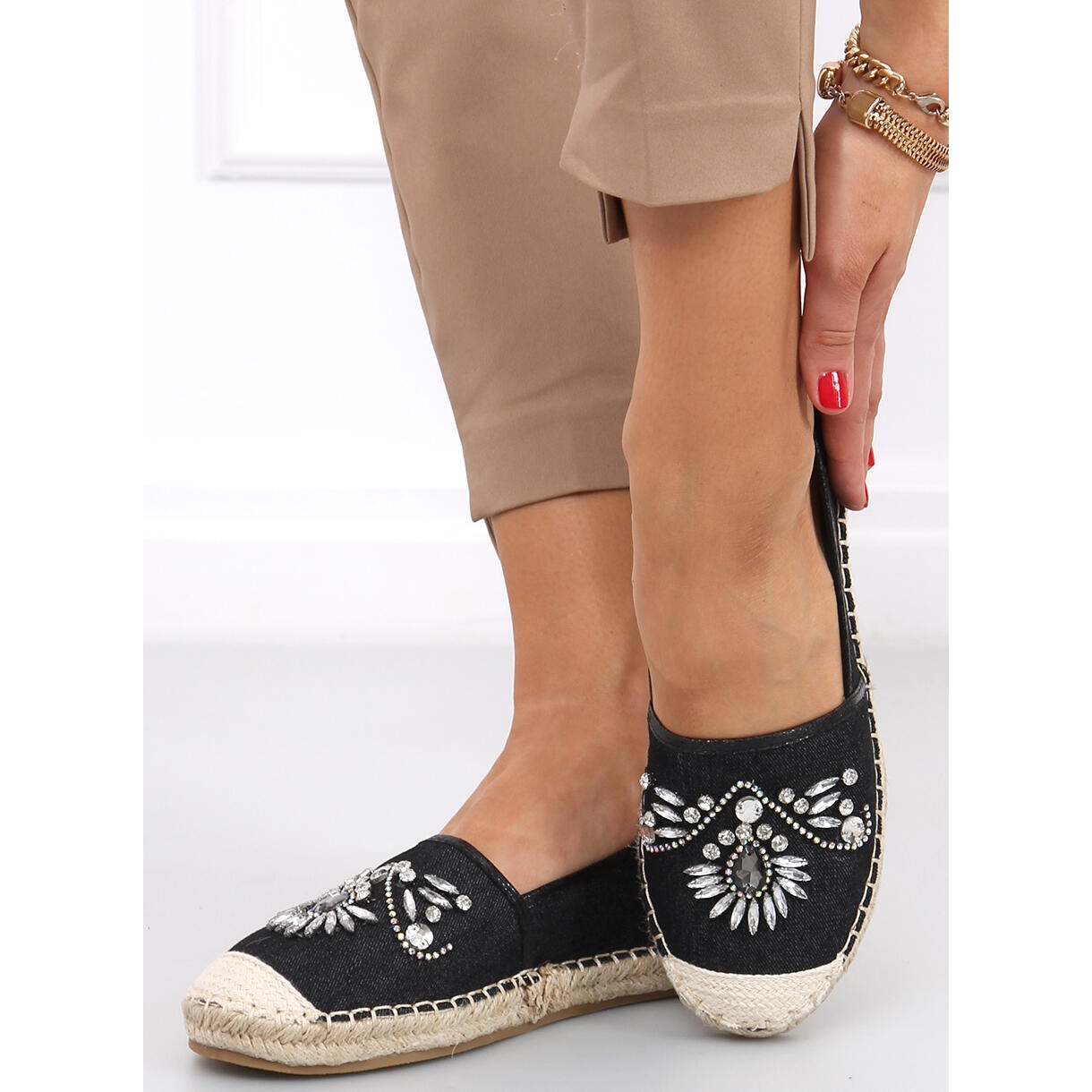 Détails: Espadrilles avec pierres Birbal Black le noir