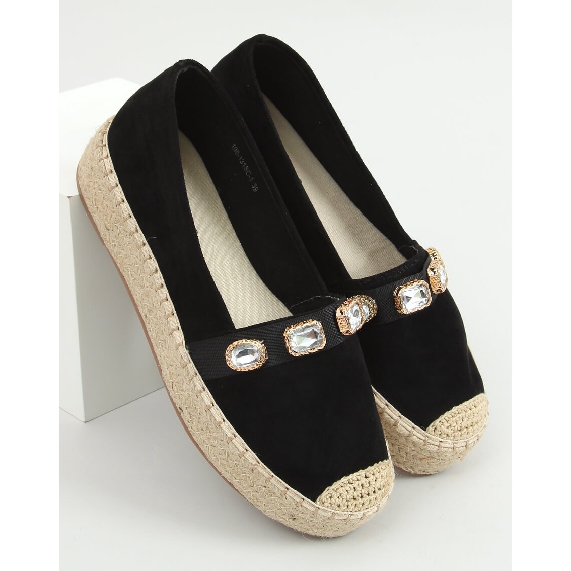 Détails: Espadrilles avec pierres noires 100-131-SC-1 Noir le noir