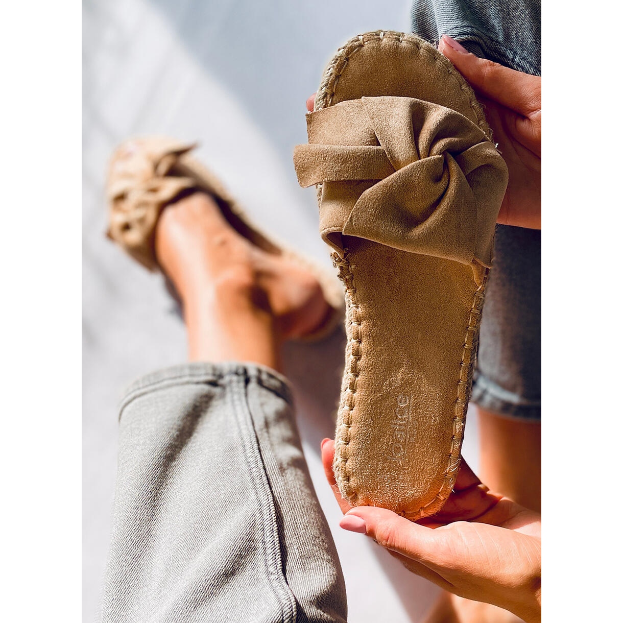 Un détail unique attire l'attention : un charmant nœud qui ajoutera un peu de charme féminin à n'importe quel style. Fabriquées en daim écologique, les tongs offrent non seulement un look élégant, mais aussi un confort de port grâce à l'insert en cuir écologique doux.