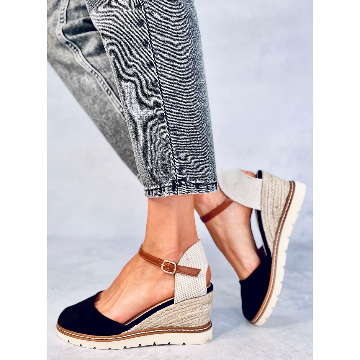 Nous vous présentons les élégantes espadrilles compensées Ellio Black - le complément parfait au style estival ! Ces chaussures pour femmes, d'une hauteur de cale de 7,5 cm, impressionnent non seulement par leur couleur noire classique, mais aussi par une finition en lin, qui leur ajoute légèreté et style. Même par temps chaud, vous pourrez profiter du confort et de la stabilité grâce à la cale soigneusement conçue.