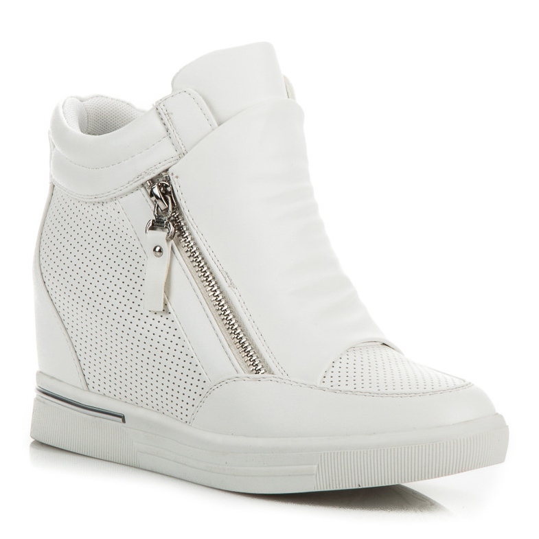 Les baskets compensées blanches de la marque Inna sont un excellent choix pour les femmes qui apprécient la combinaison de style et de confort. Ces chaussures de sport montantes se distinguent par un bout rond et une fermeture éclair moderne, ce qui non seulement les rend plus faciles à enfiler, mais leur confère également un caractère unique.