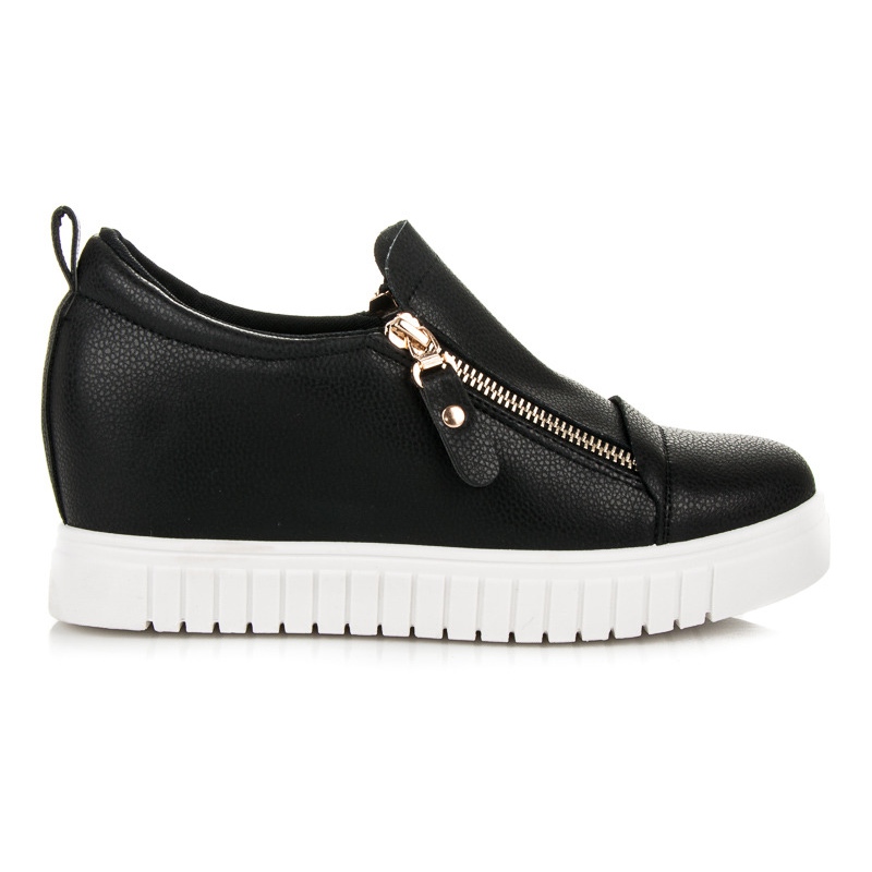 De plus, le bout rond et la fermeture éclair sont des solutions pratiques qui assurent un confort de port et un enfilage facile. Avec un style minimaliste, sans motif, les baskets compensées noires s'adaptent à de nombreux styles - du jean à la robe. Choisissez ces baskets et créez un look unique qui mettra en valeur votre personnalité !
