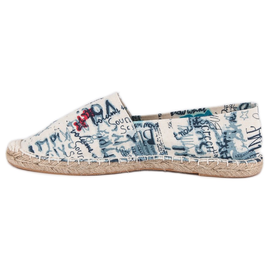 Les espadrilles sont fabriquées dans un tissu de haute qualité, ce qui les rend légères et aérées, parfaites pour les journées chaudes. Le charmant motif avec inscriptions leur donne du caractère, et les couleurs dans les tons blanc, bleu et bleu marine les permettent de s'adapter à de nombreux styles, aussi bien du quotidien que plus élégants.