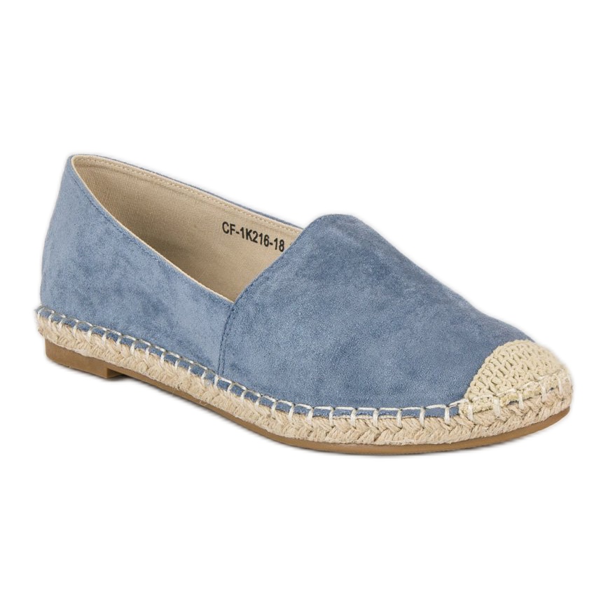Fabriquées en cuir suédé écologique, ces espadrilles se distinguent non seulement par leur belle couleur bleue, mais également par leur durabilité et leur facilité d'entretien. Leur bout rond assure un confort de port et la fermeture à enfiler permet d'enfiler et de retirer les chaussures facilement et rapidement.