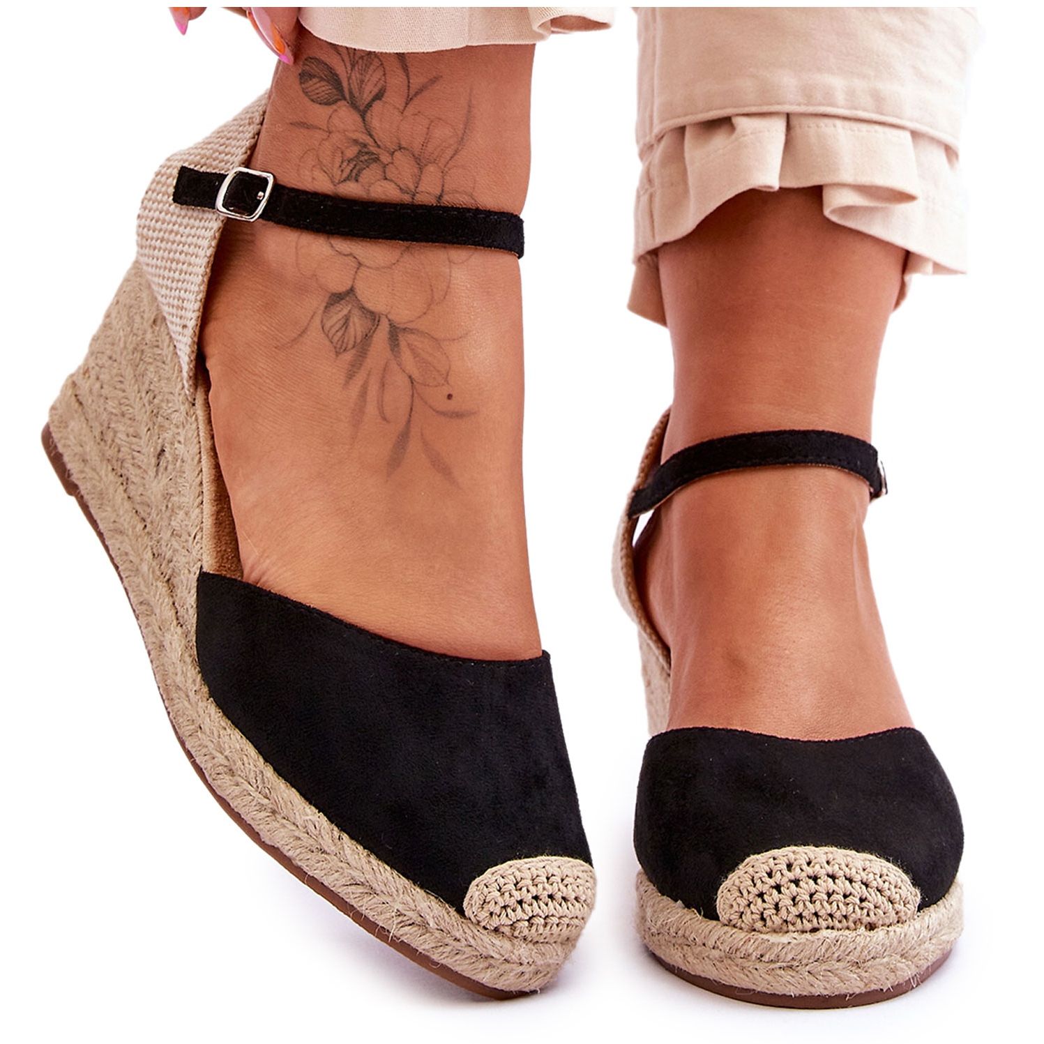 Espadrilles en Daim Sandales Compensées Noir Cammer